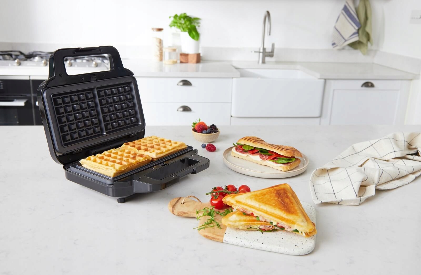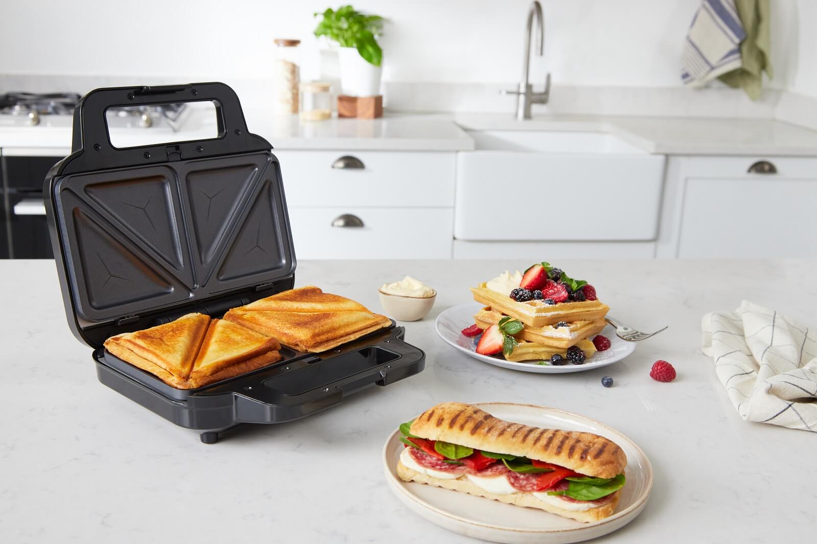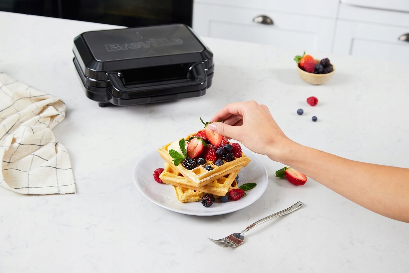 Приготовьте вкусные бутерброды, пушистые вафли и хрустящие Panini , используя Breville 3-W-1 Ultimate Snack Maker. Средний .