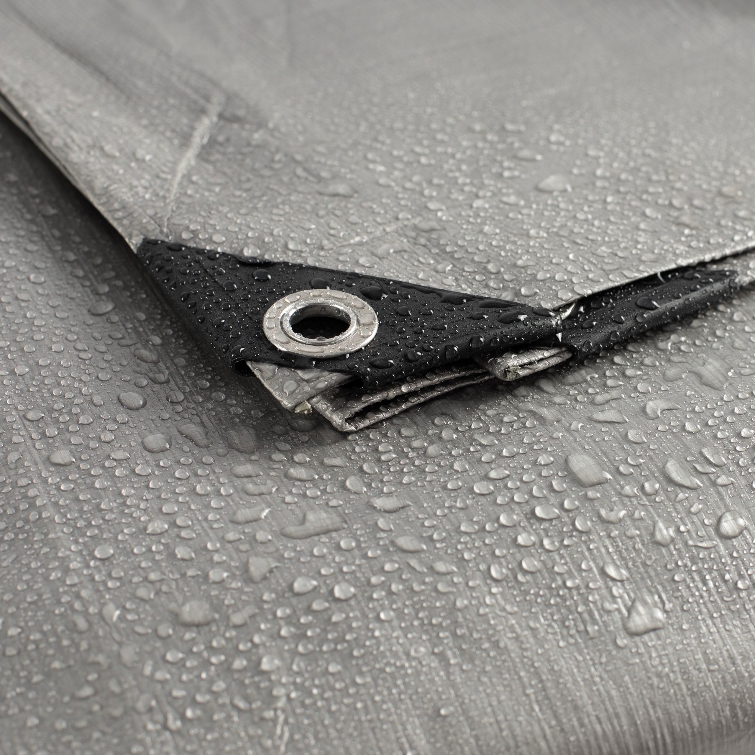 Тарпаулин имеет алюминиевые глаза диаметром 12 мм (вы можете легко отложить через них струны), которые расположены по всей длине протоков каждые 100 см друг от друга. Они позволяют комфортно крепление брезента и простой висящий его.