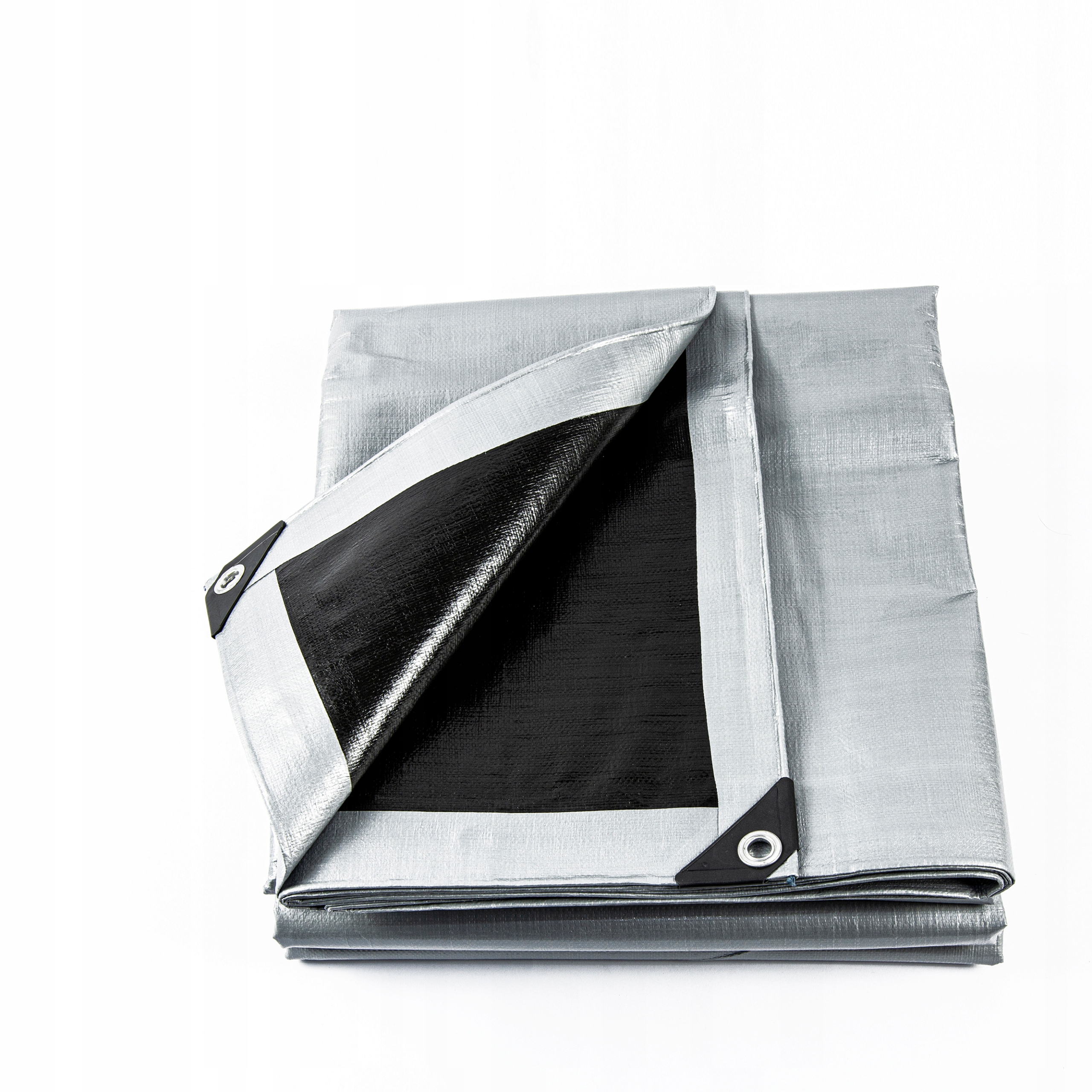 Брезент имеет усиленные края и толстые пластиковые вставки, дополнительно стабилизирующие углы.