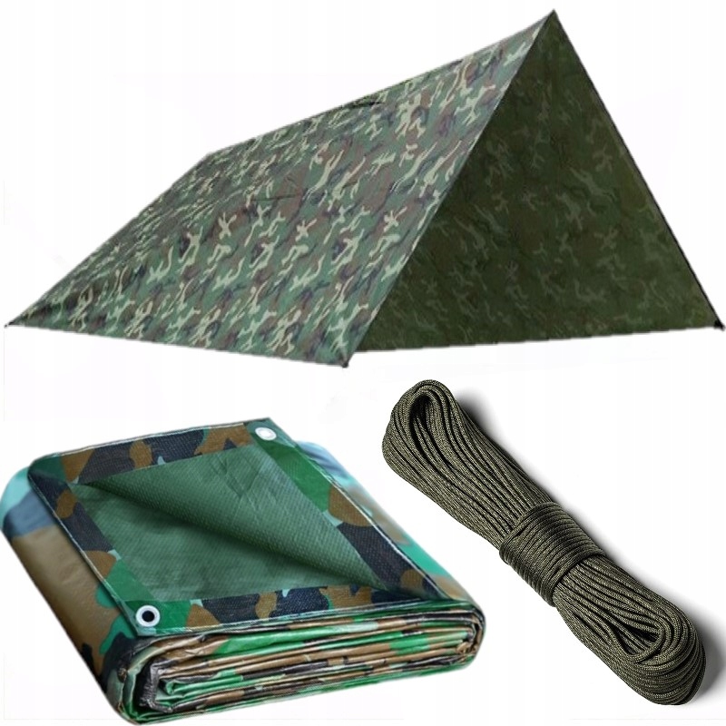 Брезент – это эффективная защита от дождя, солнца и ветра в полевых условиях, который не слишком нагружает рюкзак и занимает мало места. Он идеально удовлетворит требования любителей бушкрафта и выживания, но не только это, он также идеально подойдет для кемпинга или кемпинга, а также в качестве навеса от солнца. Универсальная и легкая походная простыня прямоугольной формы из полиэтилена, позволяющая легко подготовить укрытие в полевых условиях и пережить самые сложные погодные условия, например, сильный дождь или метель. Материал, из которого изготовлена простыня, легкий. и в то же время обеспечивает защиту от дождя. Металлические кольца по углам позволяют прикрепить брезент к деревьям или земле с помощью веревок или резиновых лент. Цвет брезента обеспечивает маскировку в лесных и полевых условиях. В комплект входит паракорд длиной 30 метров.