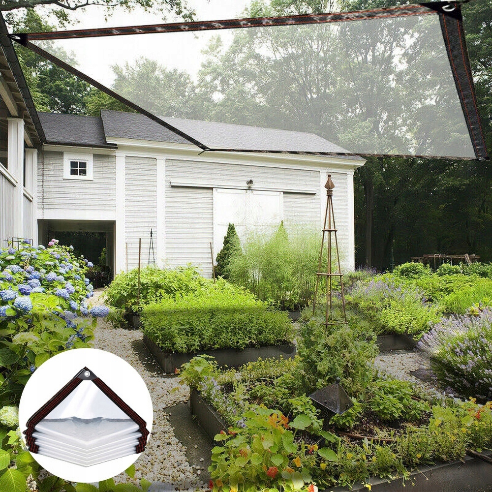 Высококачественный материал: Брезентовая ткань изготовлена из высококачественной, прочной полиэтиленовой ткани. Прозрачный брезент оснащен практичными и прочными проушинами из нержавеющей стали для удобного крепления.