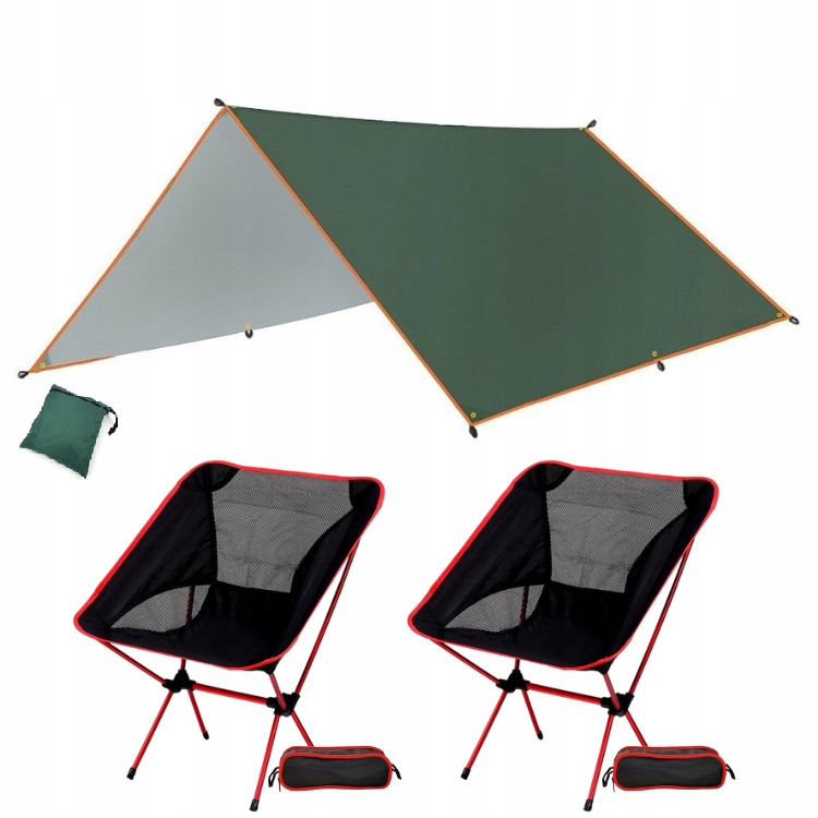 ✅Комплект брезента, ВОДОНЕПРОНИЦАЕМЫЙ ТЕРМАЛЬНЫЙ КЕМПИНГ 3х3м + 2x СКЛАДНОЙ ТУРИСТИЧЕСКИЙ СТУЛ, КРАСНЫЙ