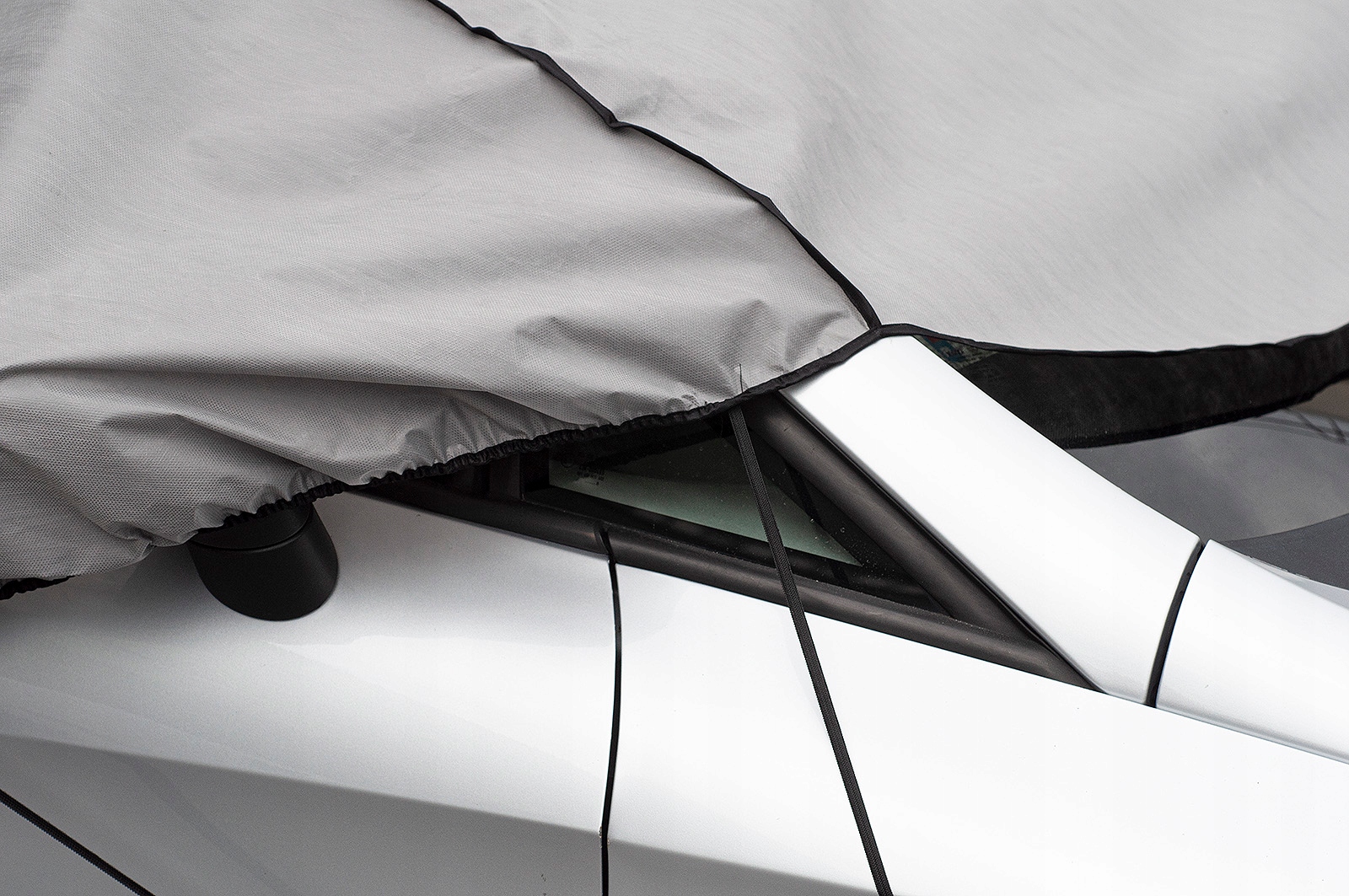 Полубрезент HALF выполнен из трехслойного материала. , прекрасно защищает от лучей УФ, снег, дождь, мороз и других атмосферных факторов, а также от чрезмерного обогрев салона автомобиля.