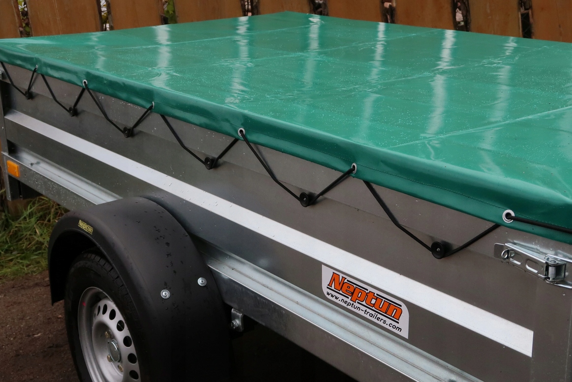 Изготавливается из брезента плотностью 650г/м2. Идеально подогнано, сделано по индивидуальному заказу. На него установлен эластичный шнур для правильного натягивания брезента на прицепе.