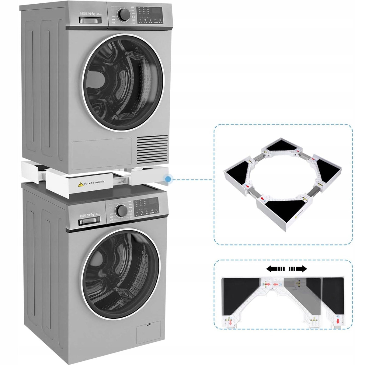 Эта рама идеально подходит для создания колонны/сушилки для стиральной машины, сохраняя ценное пространство дома. Соединительная рама универсальна и подходит для стиральных машин таких брендов, как Bosch, Siemens, Miele, Samsung, LG, Haier, Beko, AEG, Bauknecht и многих других.