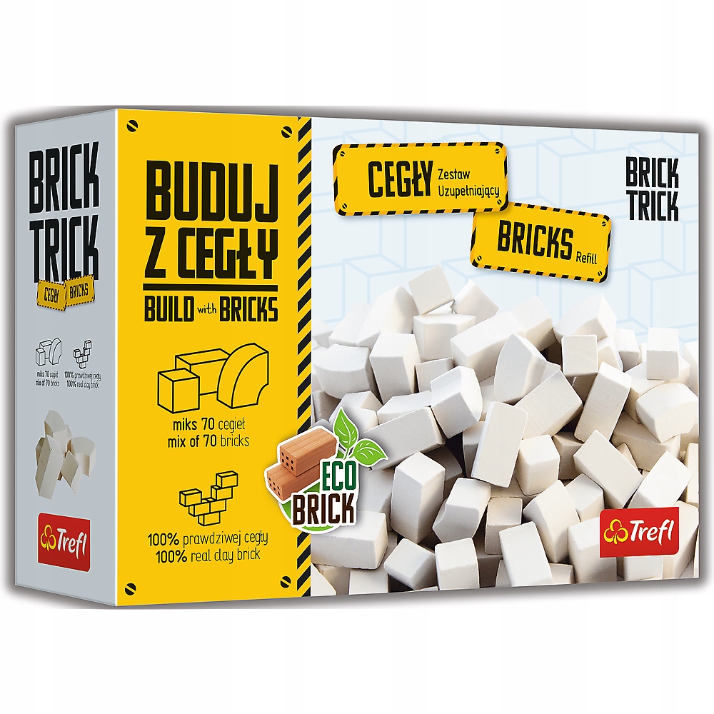 Дополнительные наборы Brick Trick — это продукты из линейки креативные конструкторы от бренда Trefl, в которых основным строительным материалом является настоящий, натуральный кирпич. Хотите продолжать веселиться и создавать больше проектов? Наборы Brick Trick – отличное решение для вас. В каждой упаковке содержится 70 настоящих кирпичиков. Используйте свое воображение и придайте зданию уникальный характер с помощью собственных идей. Целые кирпичи, половинки, черепица, а может быть, замковые кирпичи? Ознакомьтесь со всеми пакетами расширения и продолжайте играть.