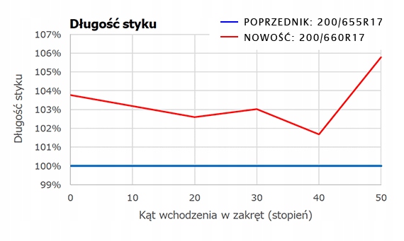 Увеличение длины контакта в среднем на 3 % при различных углах наклона значительно повысит общие характеристики шины с точки зрения устойчивости и сцепления на протяжении всего срока ее службы.
