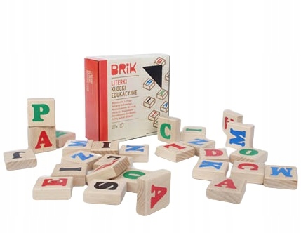 В набор входят 27 деревянных брусков из бука с буквами польского алфавита. Буквы расположены по обеим сторонам блоков.