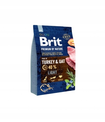 Brit Premium By Nature Light — полноценный сухой корм с индейкой и овсом, предназначенный для собак всех пород с избыточным весом.