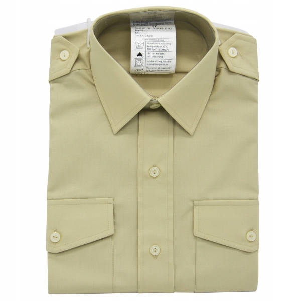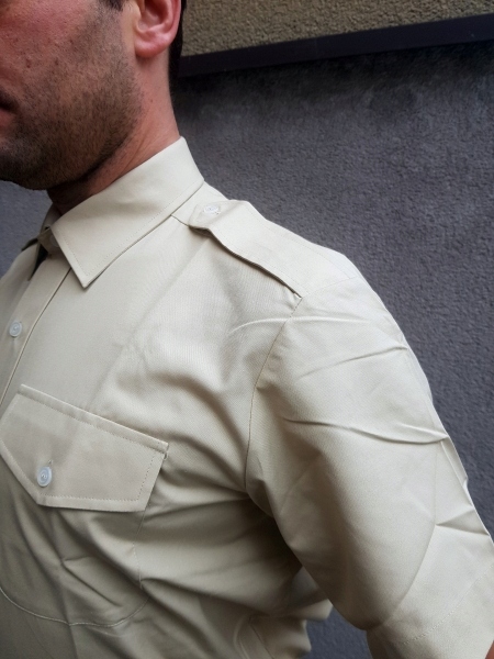 Рубашка легкая и удобная, изготовлена из парусины и хлопка. Он оснащен погонами и застегивается на пуговицы. Рубашка имеет два нагрудных кармана.