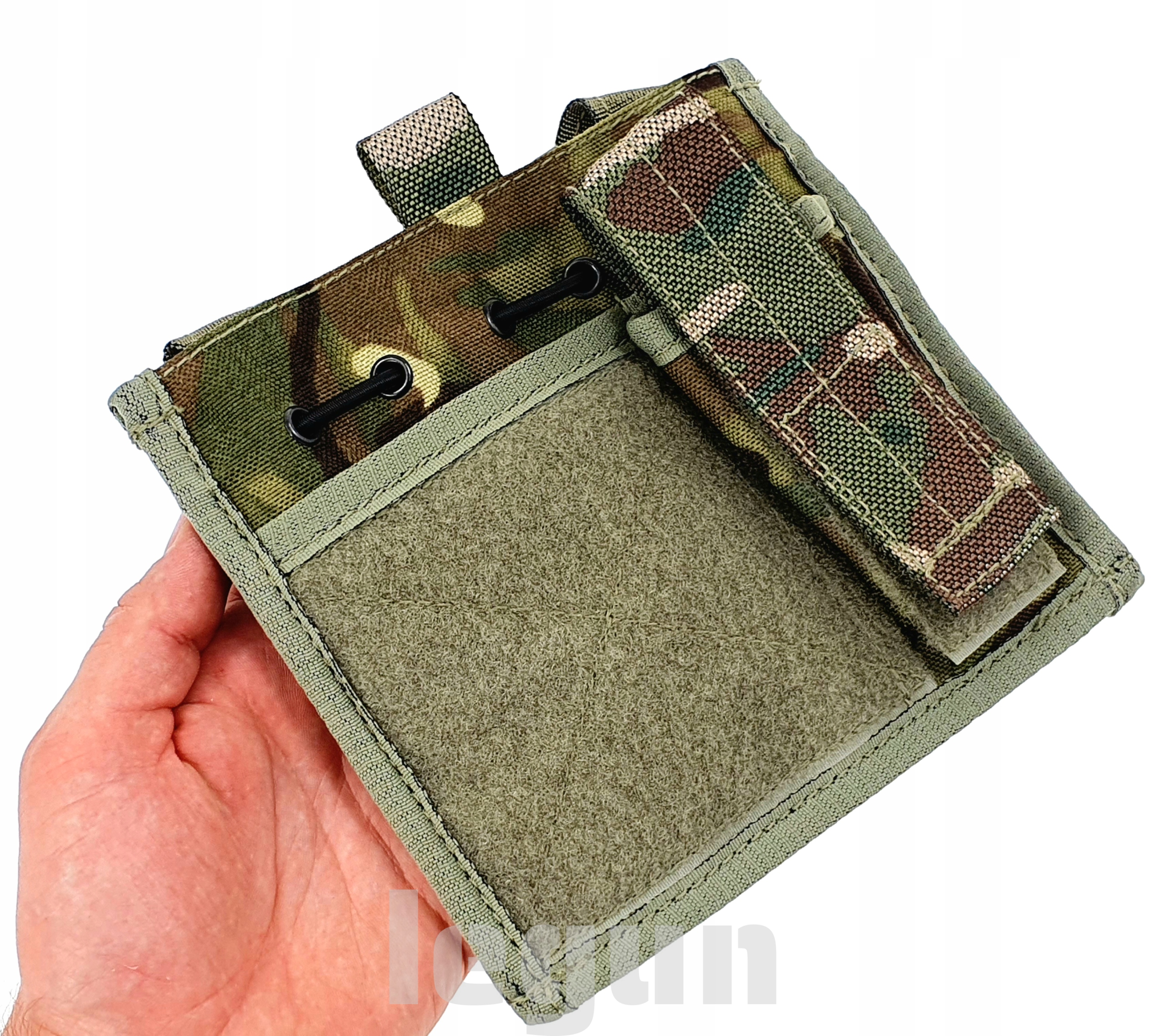 - Карман для документов, мелких предметов. Имеет основной карман, закрывающийся на прочную липучку, и два передних кармана. С внешней стороны имеется большая липучка, на которой можно разместить нашивку боевого духа, группу крови, имя, подразделение и т. д.