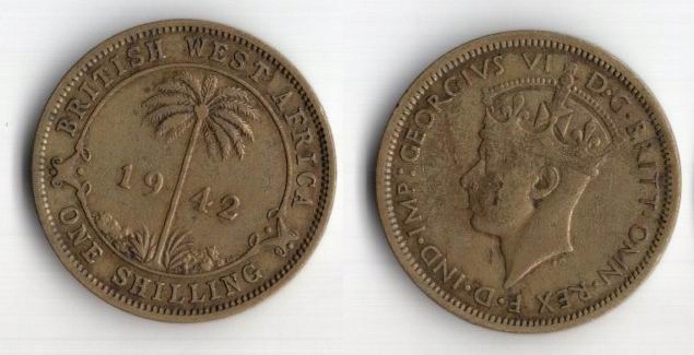 БРИТАНСКАЯ ЗАПАДНАЯ АФРИКА 1942 ГОДА 1 ШИЛЛИНГ