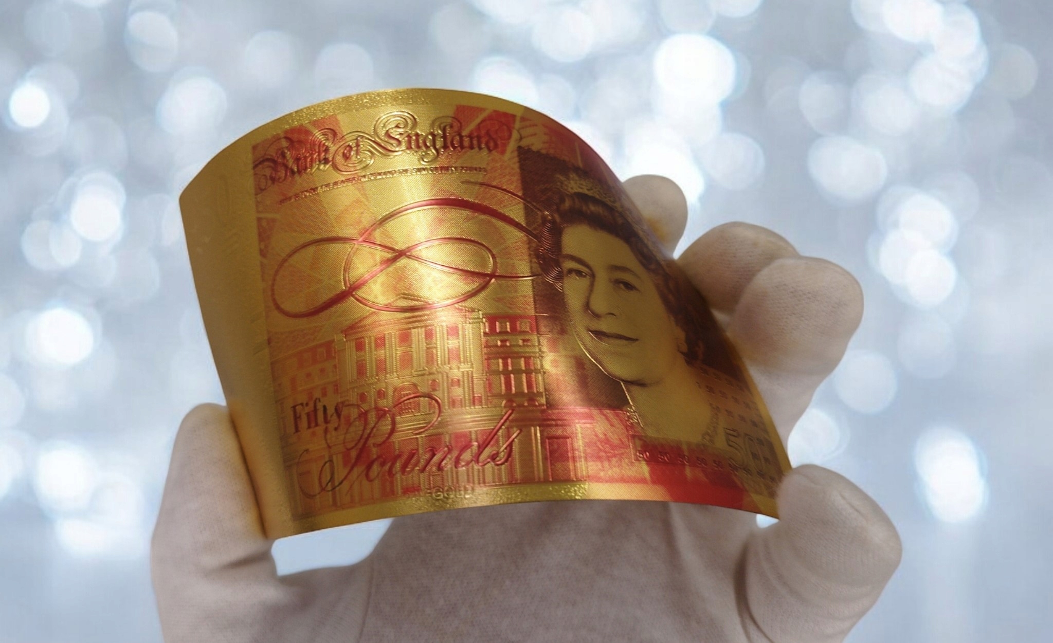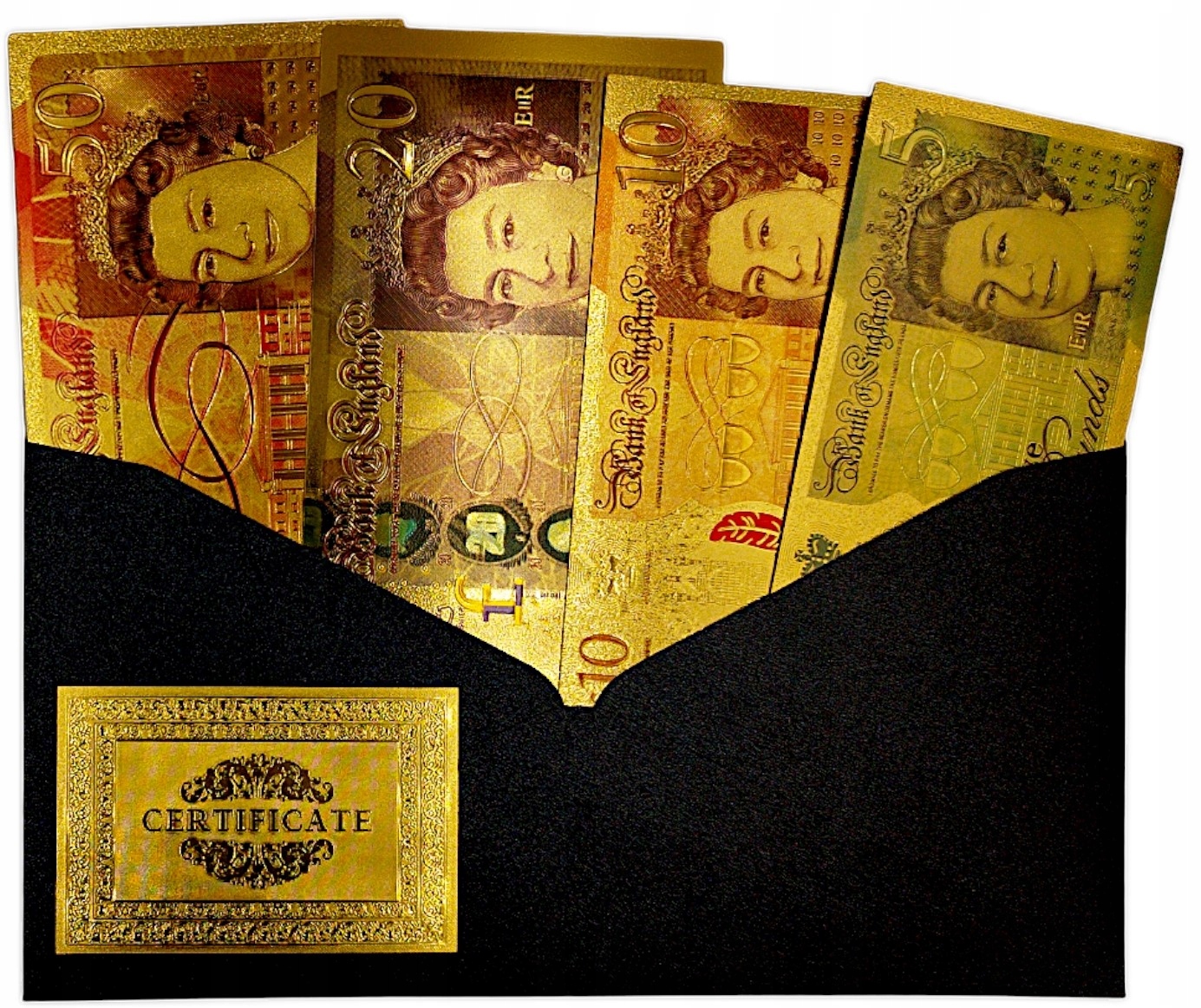 НАБОР БРИТАНСКИХ ФУНТОВ ИЗ ПОЗОЛОЧЕННЫХ БАНКНОТ ИЗ ПВХ