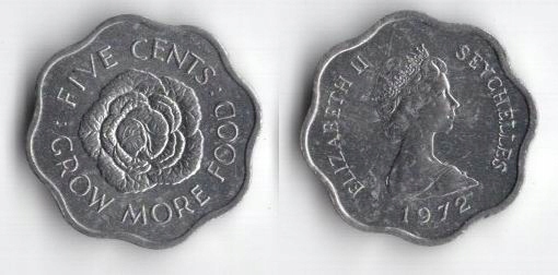 БРИТАНСКИЕ СЕЙШЕЛЬСКИЕ ОСТРОВА 5 ЦЕНТОВ 1972 ГОДА