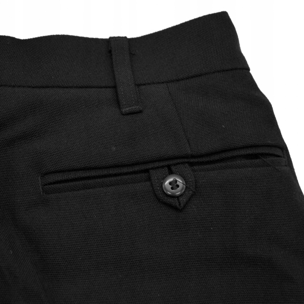 Классический крепеж, используемый в военных штанах и молнии, обеспечивает комфорт и долговечность. Глубокая черная модель, с одним задним карманом, закрепленным кнопкой.