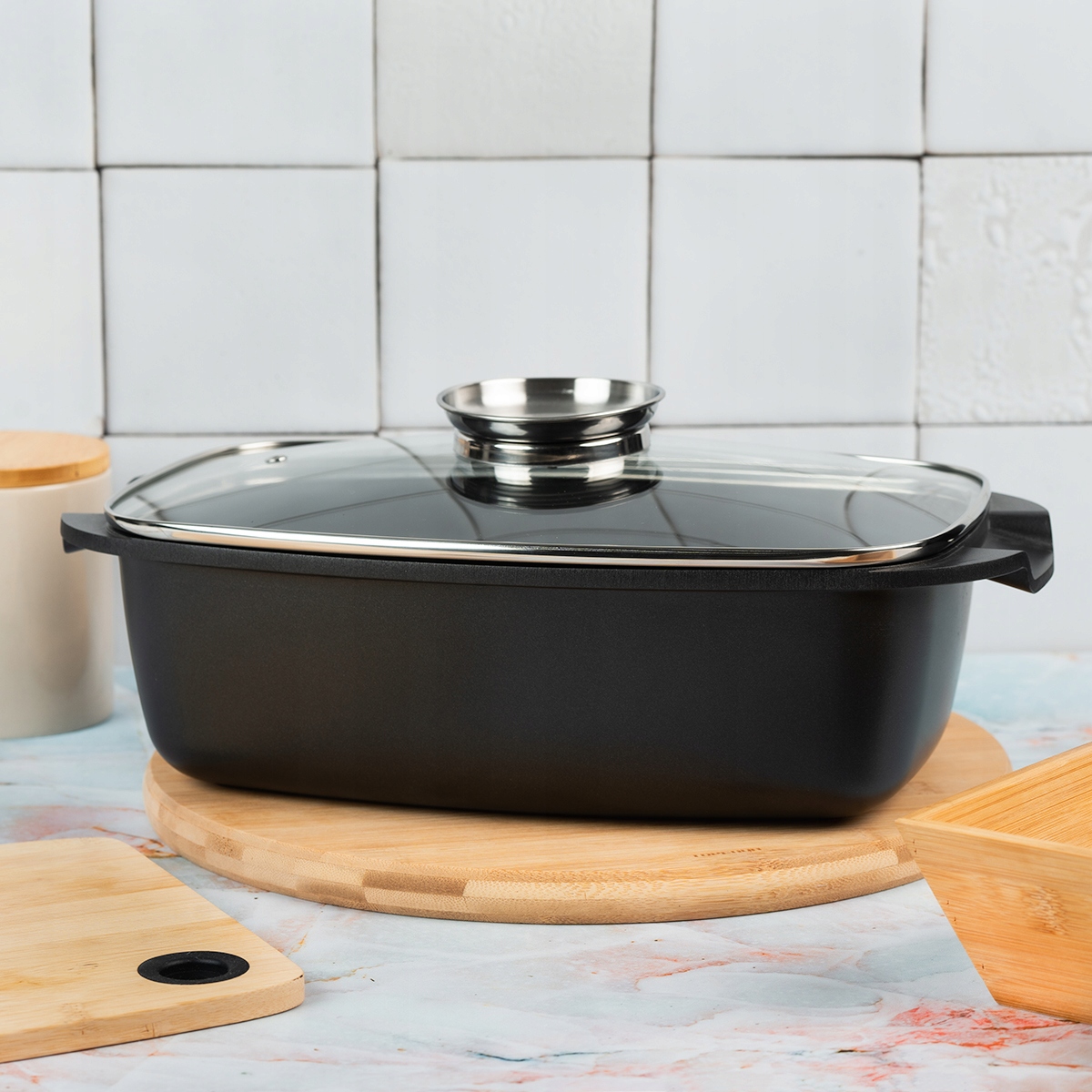 многофункциональное все -в -типе гуси с не -глящими покрытием Greblon C2, 5,5 л. Крышка с ароматистом. Это сосуд со многими приложениями , в котором вы можете:
