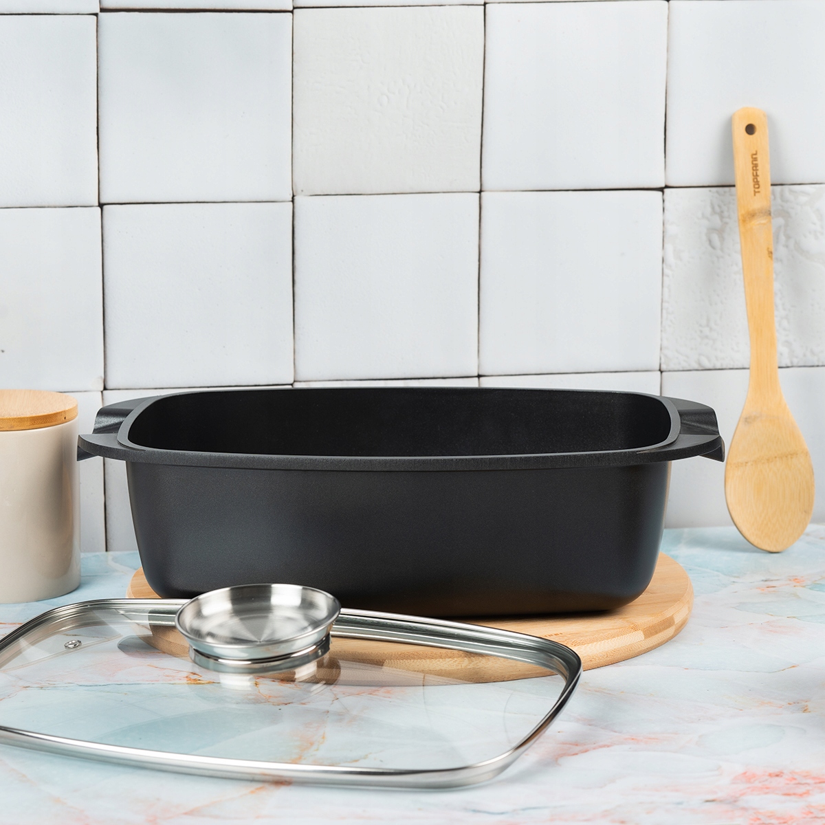 Британский с крышкой, гусь с не -стабильным покрытием Topfann 5.5l -All in 1 для приготовления пищи, туши, жаркое, выпекание в духовке h2>