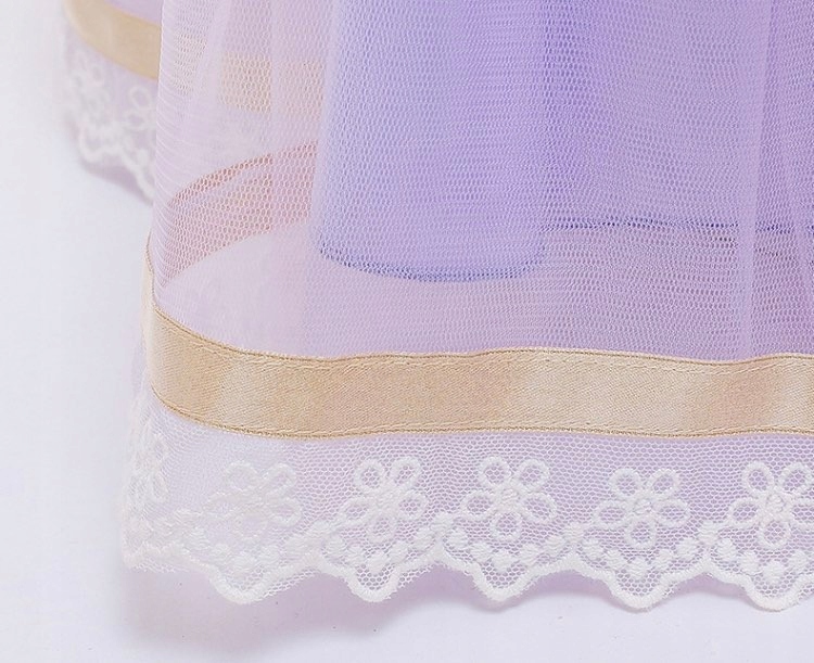 - Платье состоит из 1 слояподкладки из атласа, 2 слоя из розового тюля и 4 слоя фиолетового тюля, благодаря чему оно красиво развевается во время танца.