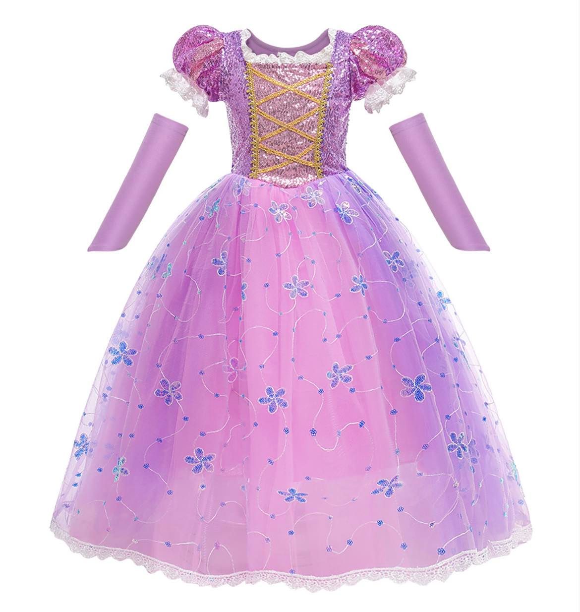 - Красивое платье, имитирующее платье героини Рапунцель из феи сказка «Рапунцель: Запутанная история».