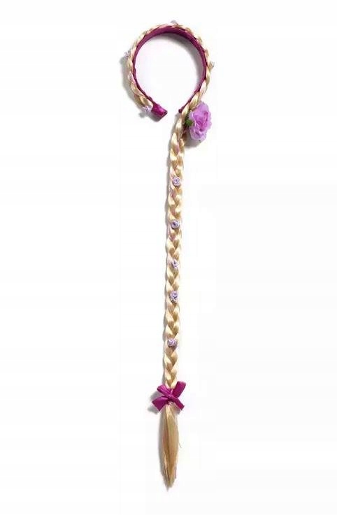 Повязка Рапунцель из сказки «Заплатани» с длинной косой, украшенной цветами.