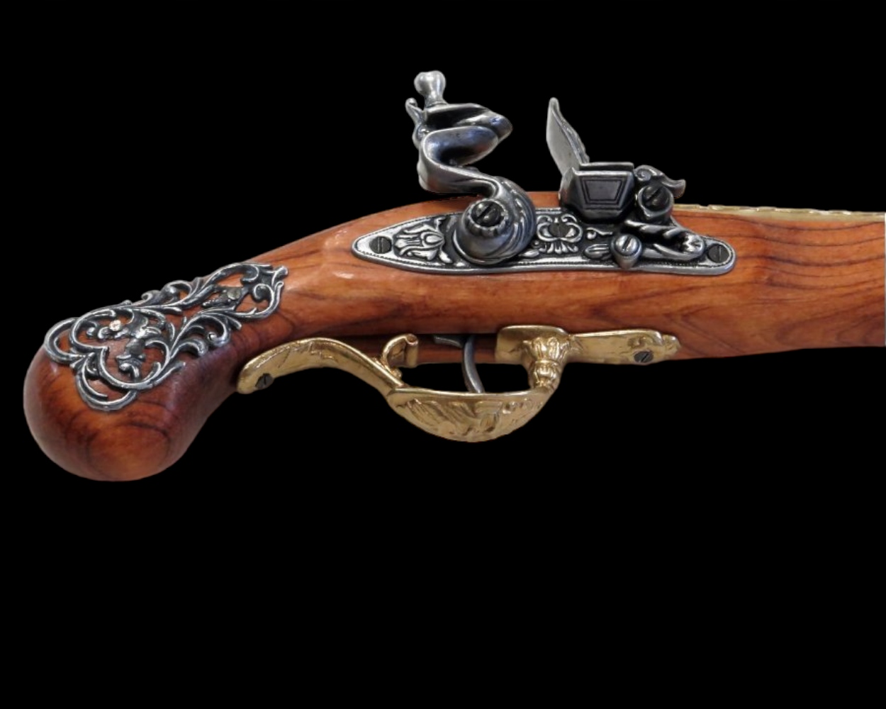 Ищете элегантный подарок или хотите купить что-то оригинальное и уникальное? Приглашаем Вас воспользоваться нашим предложением – приобрести британский кремневый пистолет. Реплика изготовлена из материалов высочайшего качества. При этом есть возможность перезагрузки вернуть так называемый сухой кадр, что еще больше усиливает серьезность этой реплики.