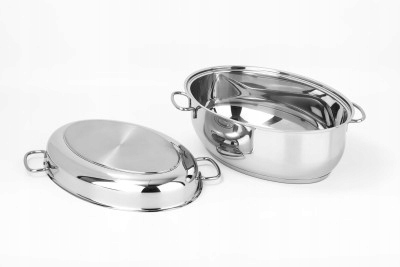 Термонакопительное трехслойное дно толщиной 7,6 мм обеспечивает быстрый нагрев, равномерное распределение и длительное сохранение тепла. Накопленное тепло позволяет закончить приготовление пищи уже через 10-15 минут после выключения плиты, что существенно снижает расход энергии на обогрев. Жаровню можно использовать на всех видах плит: электрических, газовых, керамических и индукционных, а также в духовых шкафах.