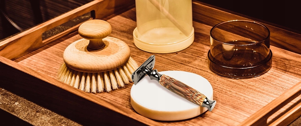 Бритва с двойными лезвиями, ручка из натурального бамбука.