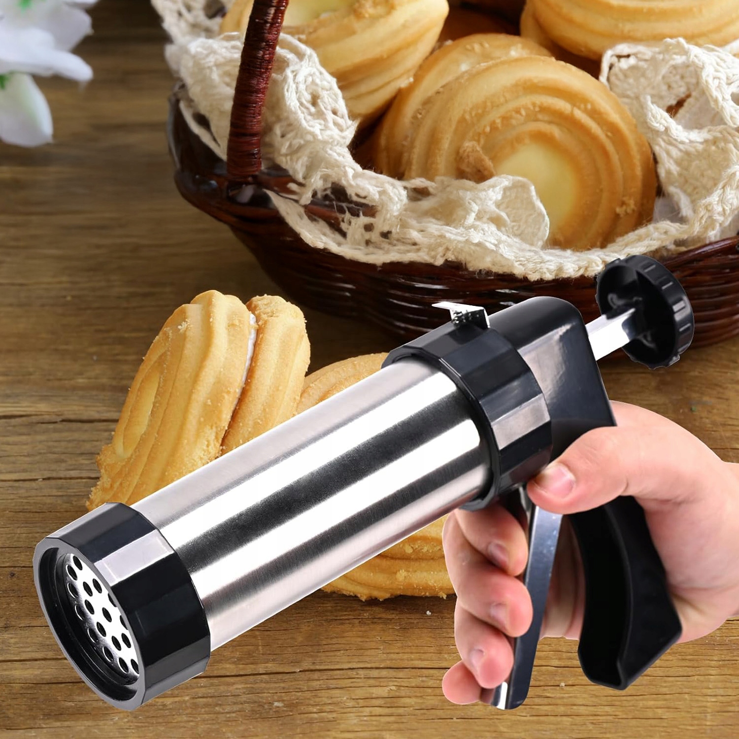 Наш продукт — это не только инструмент, но и отличный способ творчески провести время на кухне. Благодаря богатому набору узоров машина позволяет создавать печенье различной формы: от классических звездочек до более изысканных узоров. Это идеальный инструмент, который оценят и взрослые, и дети – выпечка и украшение тортов доставит удовольствие всей семье!
