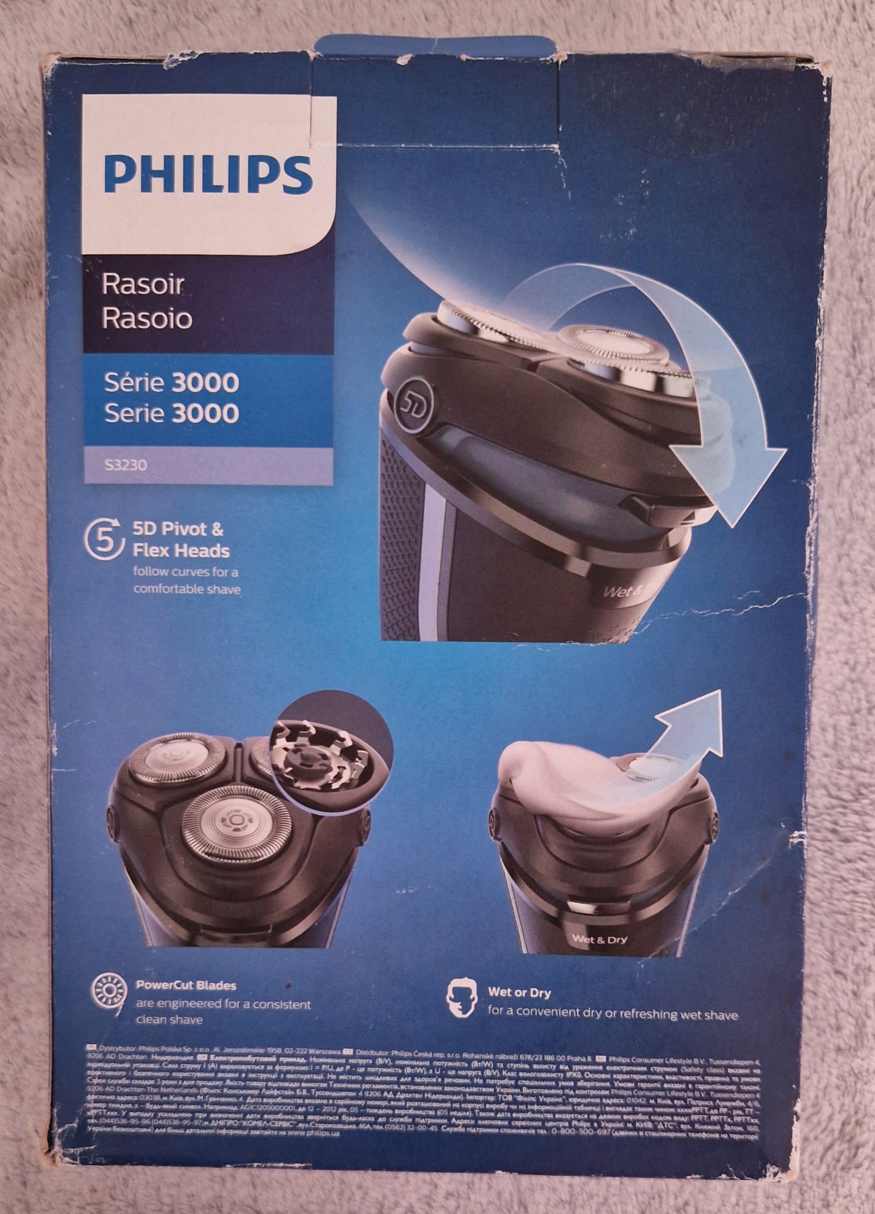 - Гладкое бритье: бритва Philips серии 3000 оснащена головками 5D Pivot & Flex и системой лезвий PowerCut. Ее можно использовать как влажную, так и всухую для гладкого бритья каждый раз.