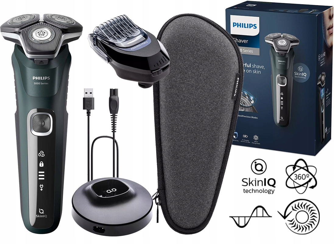 PHILIPS SERIES 5000 S5884/38 Skin IQ со встроенным триммером + дополнительная головка (триммер для бороды AC20 Technology) + подставка + элегантный дорожный футляр Philips.