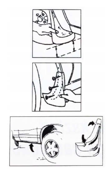 3. В случае автомобилей, внешняя конструкция которых делает установку невозможной, надрежьте острым ножом верхнюю часть брызговика так, чтобы он плотно прилегал к крылу (бамперу)