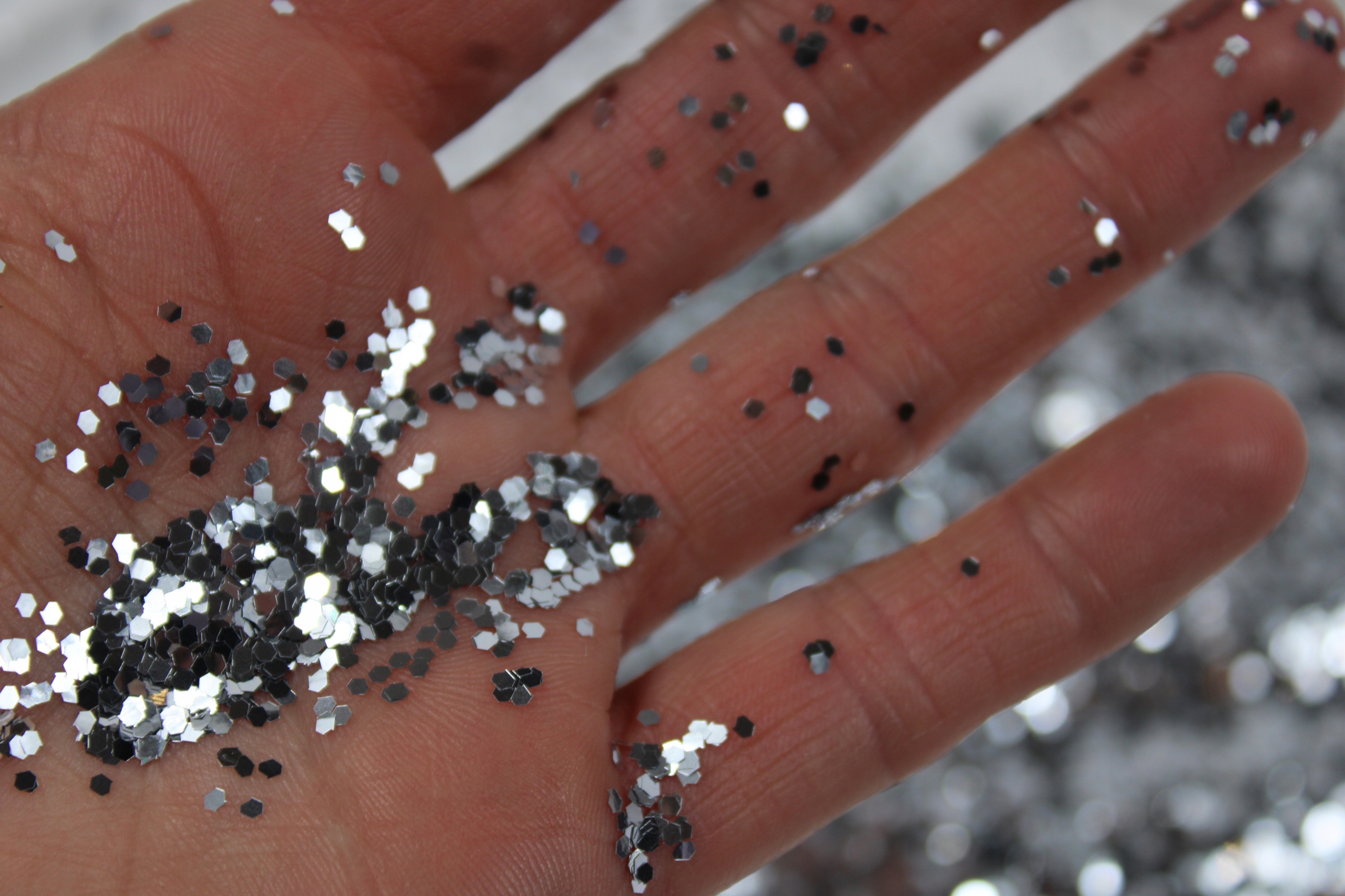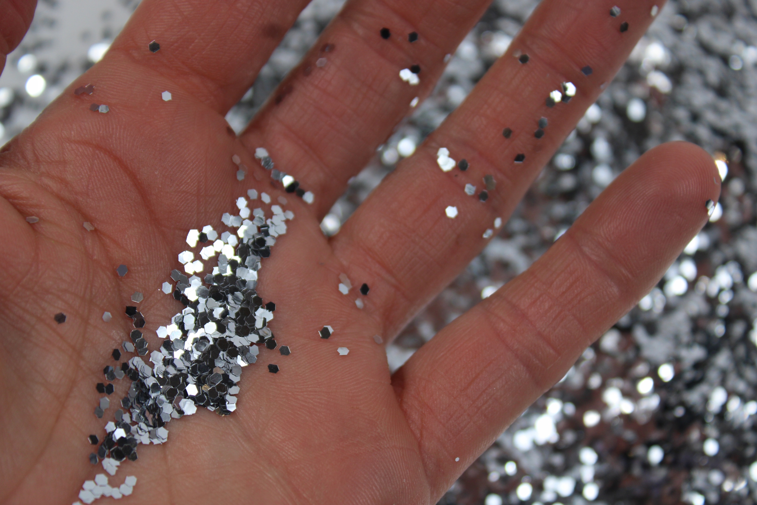 Brokat srebrny dekoracyjny sypki 1,5mm do paznokci farb fug 20g