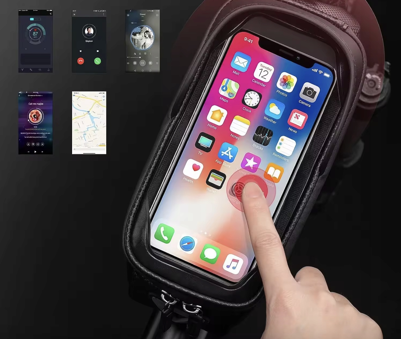 Сумка оснащена практичным чехлом для телефона. Он изготовлен из прозрачного термопластичного полиуретана, обеспечивающего чувствительность к прикосновению более 95 %. Это позволит вам легко использовать телефон во время вождения, например, использовать навигацию или управлять музыкой.