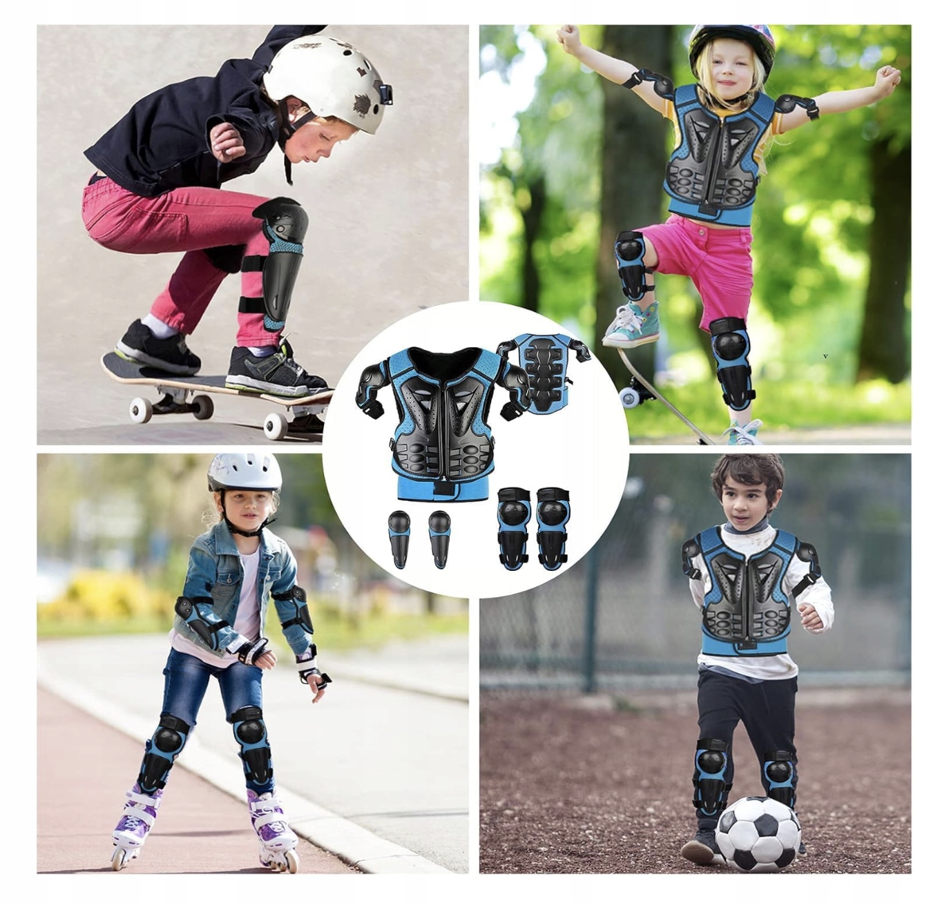 - Полное регулирование: Гибкие полосы и твердые зажимы позволяют идеальное соответствие брони с силуэтом ребенка . Набор «растет» с ним, подходящая для детей в возрасте от 5 до 13 лет.
