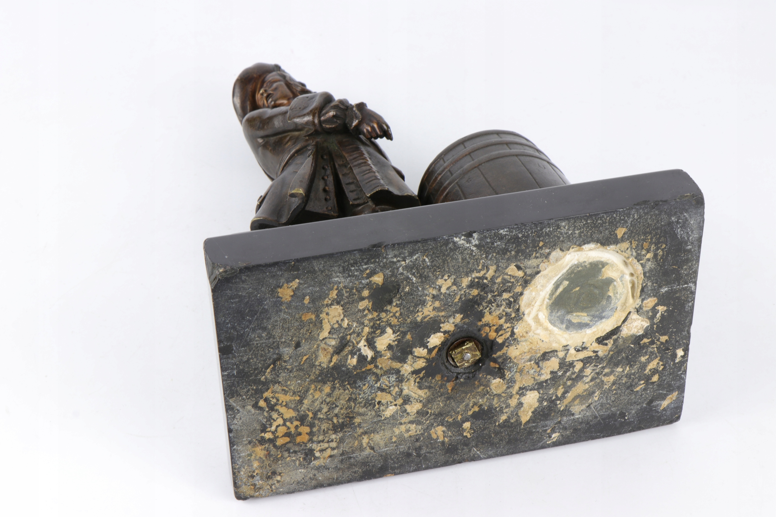 может быть картинки Ни один мушкет не удерживается в правой руке мушкетера, дефекты на краях мраморной основы. В черной мраморной основе вы можете увидеть снизу небольшого контейнера. Возможно, отсек для хранения (?)