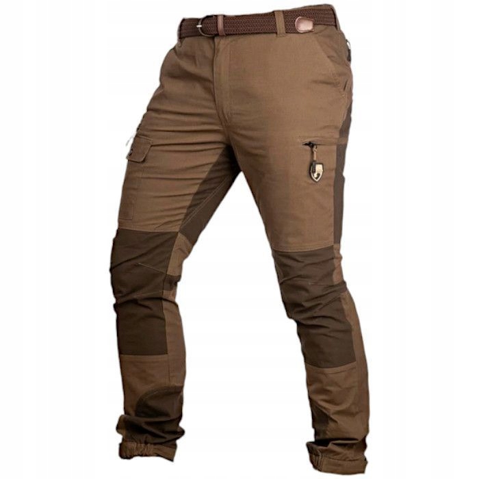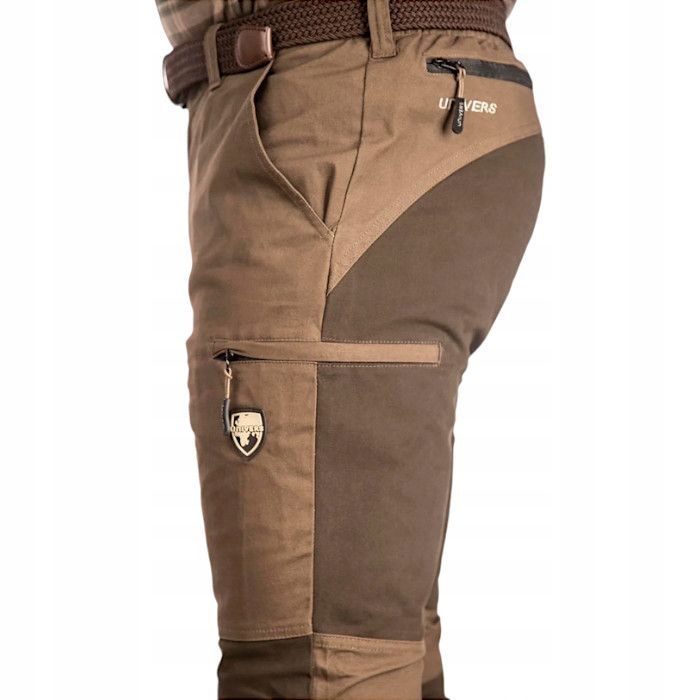 Водонепроницаемые брюки Универсальные легенды в Olive-Yasnobal Brown являются функциональными и долговечными охотничьими штанами, предназначенные для комфорта и активных расходов на открытом воздухе. , сделанный в 97% дышащего хлопка и 3% эластана, они гарантируют удобство даже в теплые летние дни. Пропитка материала означает, что вода не впитывает, но течет по ткани, создавая эффект перленса.