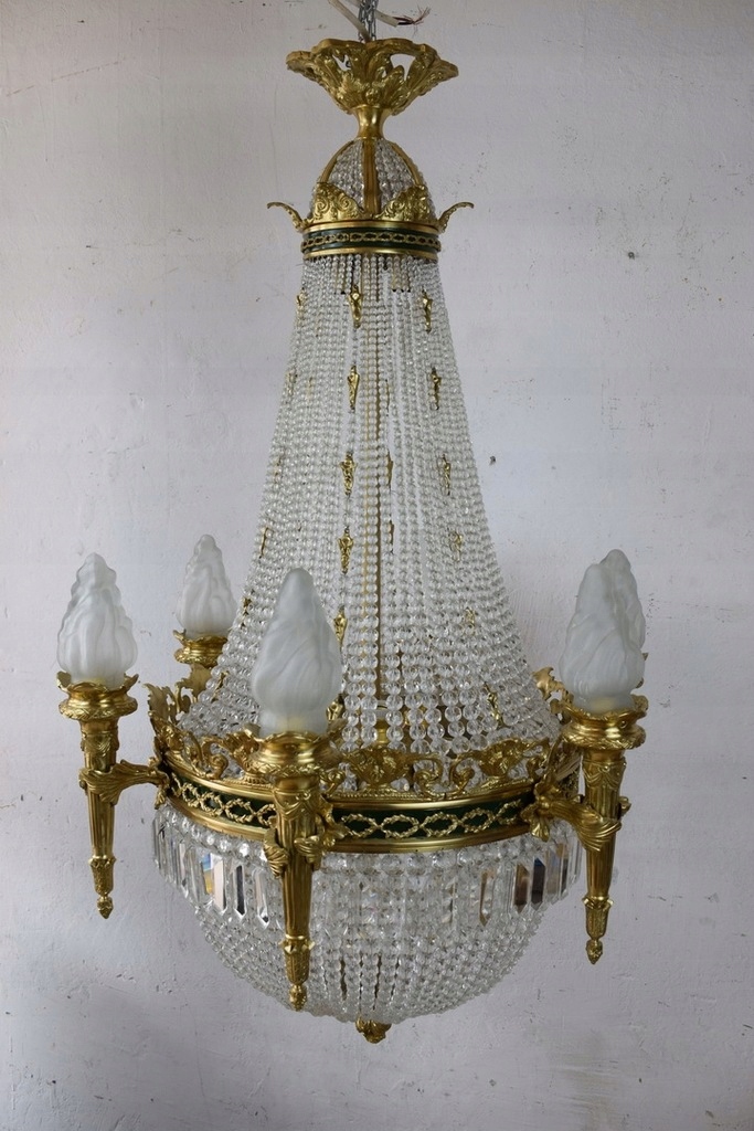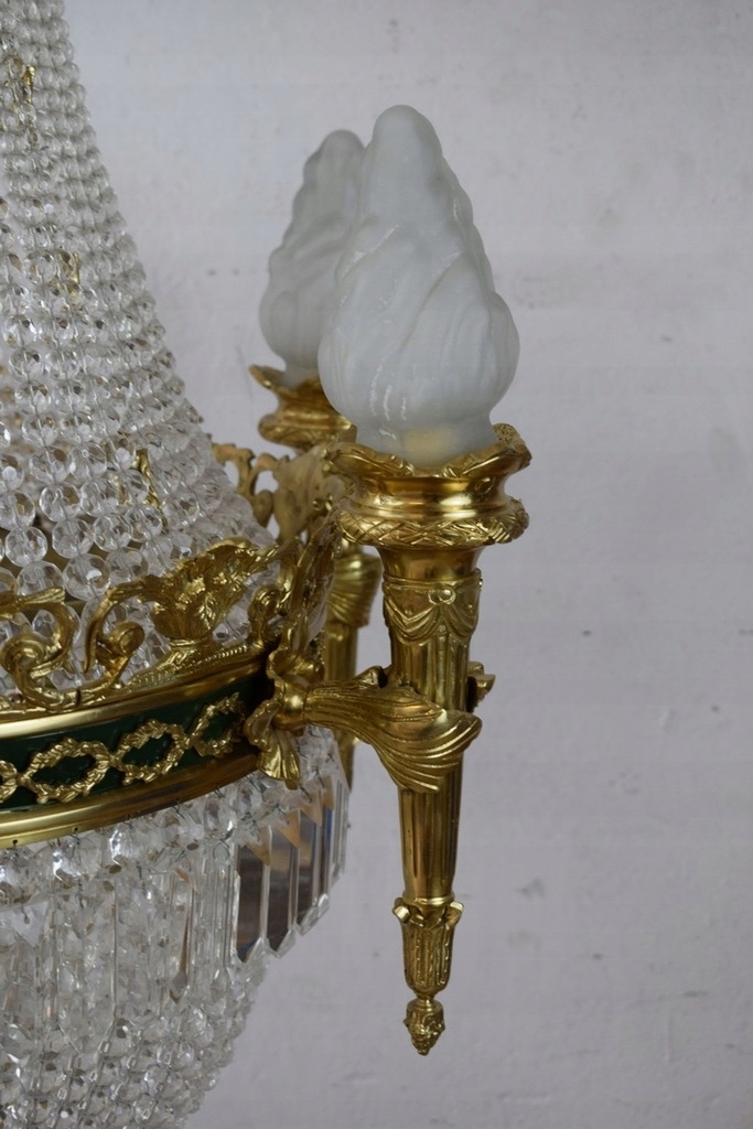 ✨ Описание: Представляем вам уникальную дворцовую люстру из бронзы высочайшего качества, украшенную изящными кристаллами. Этот впечатляющий осветительный элемент размером 110 см представляет собой идеальное сочетание классической элегантности и современного дизайна, которое придаст роскошный характер любому интерьеру.