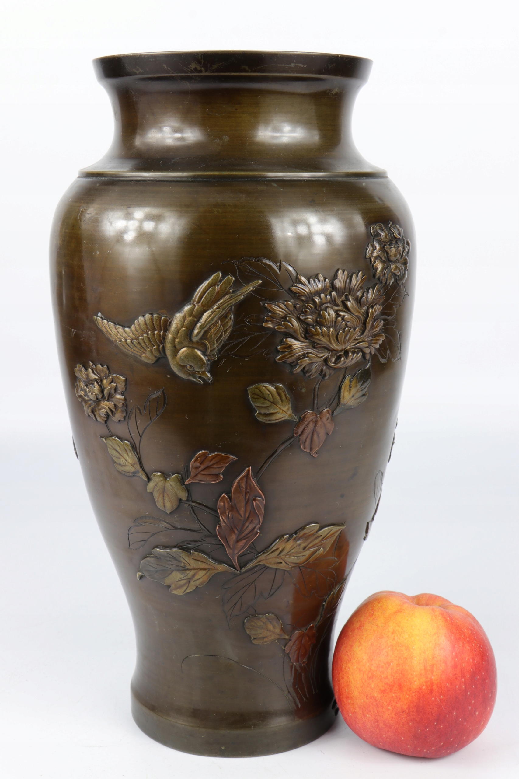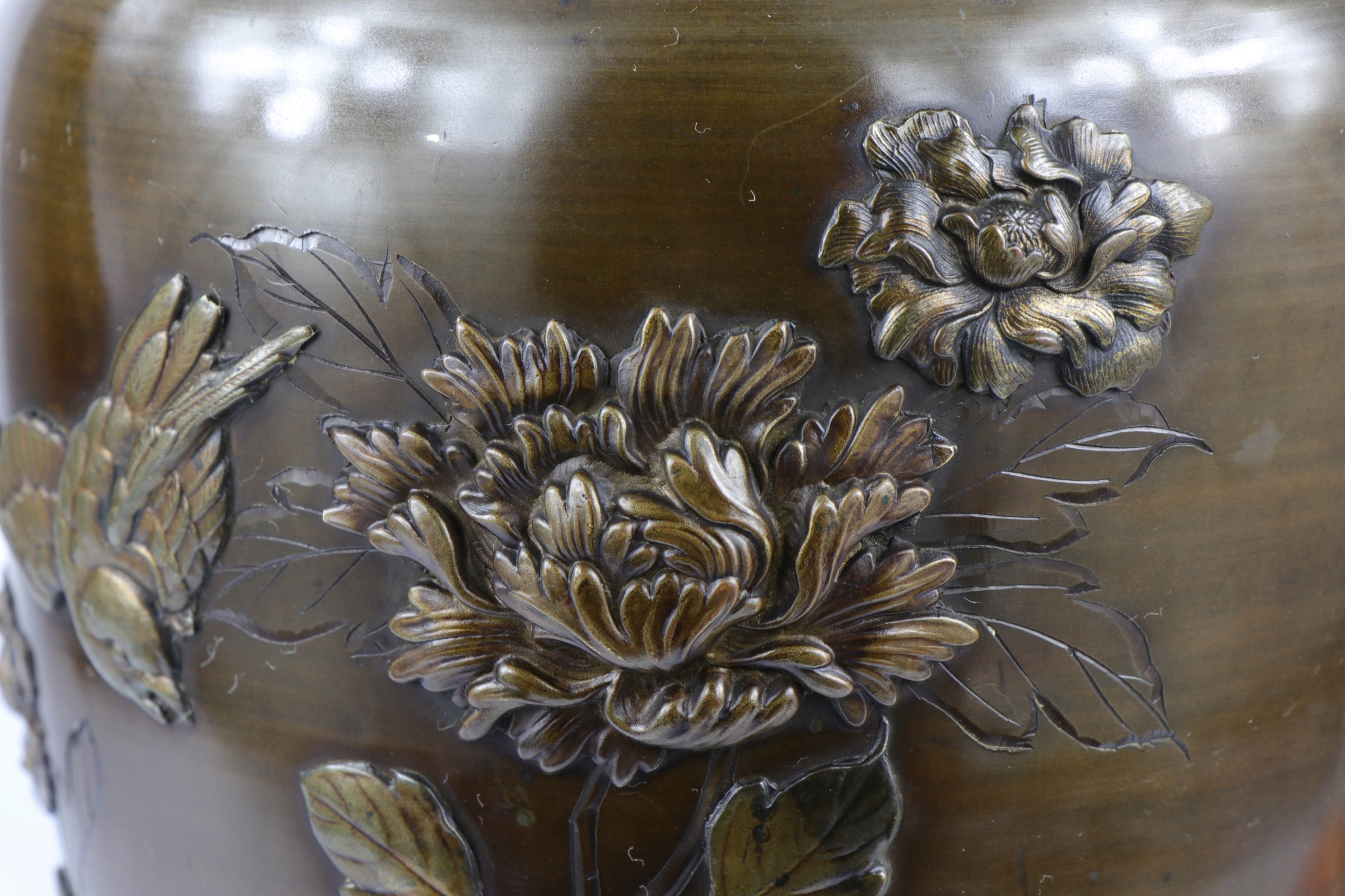 Бронзовая ваза Япония Мэйдзи 1868 г. 1912 г. рельефная инкрустация орнаментом
