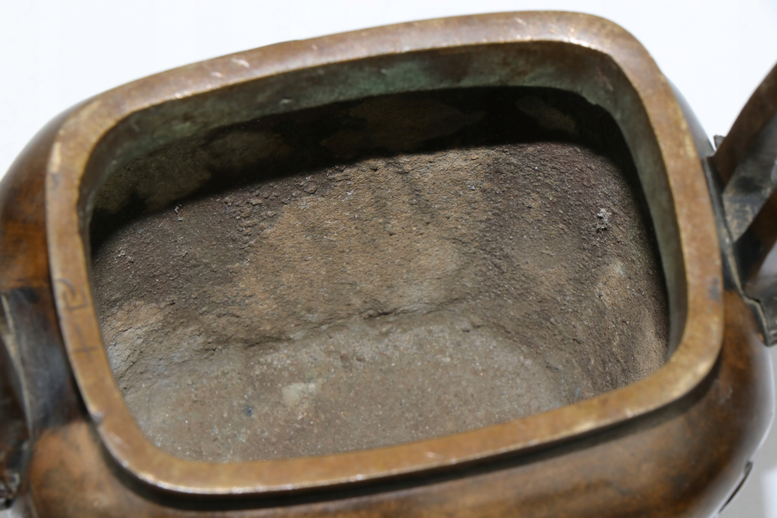 Интересный литой бронзовый сосуд, украшенный рельефным узором в виде фениксов. Бронза с красивой темной патиной.