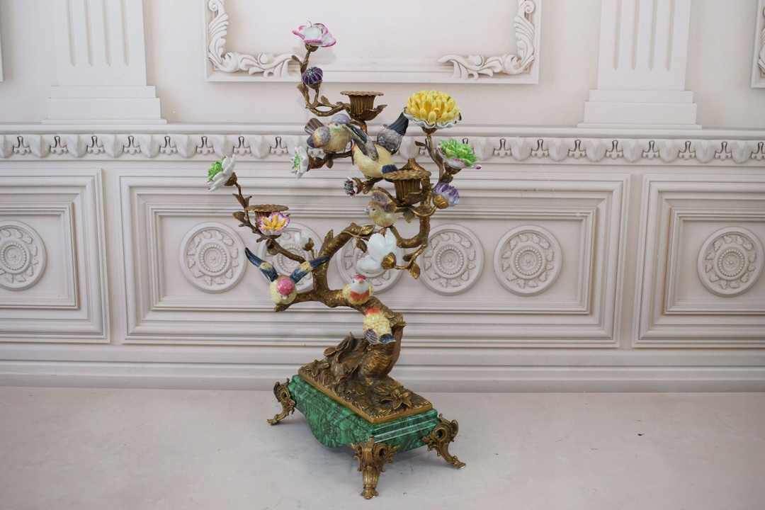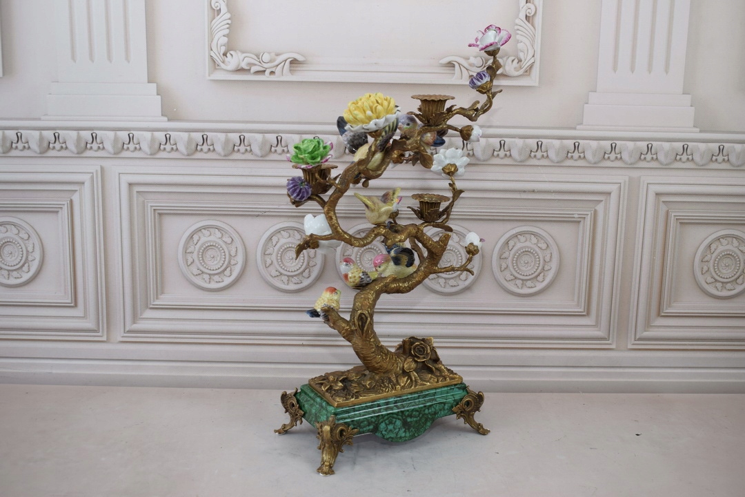 Здравствуйте, сегодня я хотел бы предложить вам красивый гигантский подсвечник, сделанный из бронзы и фарфора.