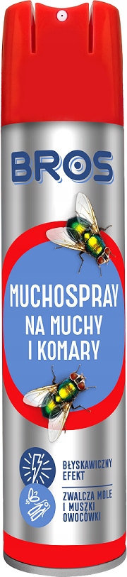 Bros Muchospray — аэрозольный препарат для борьбы с летающими насекомыми. Спрей эффективно борется с: мухами, комарами, плодовыми мушками, осами и взрослой платяной молью в помещении.