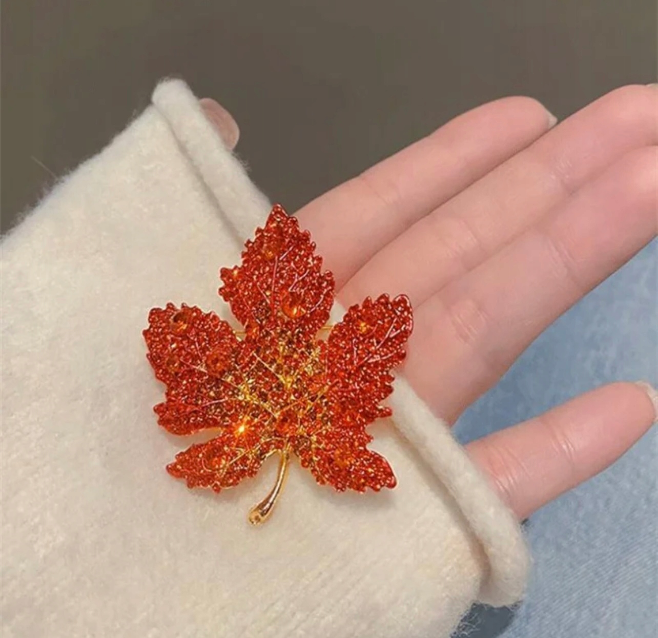 Предмет распродажи — брошь-листочек с мини-кристаллами, точно как на фото.