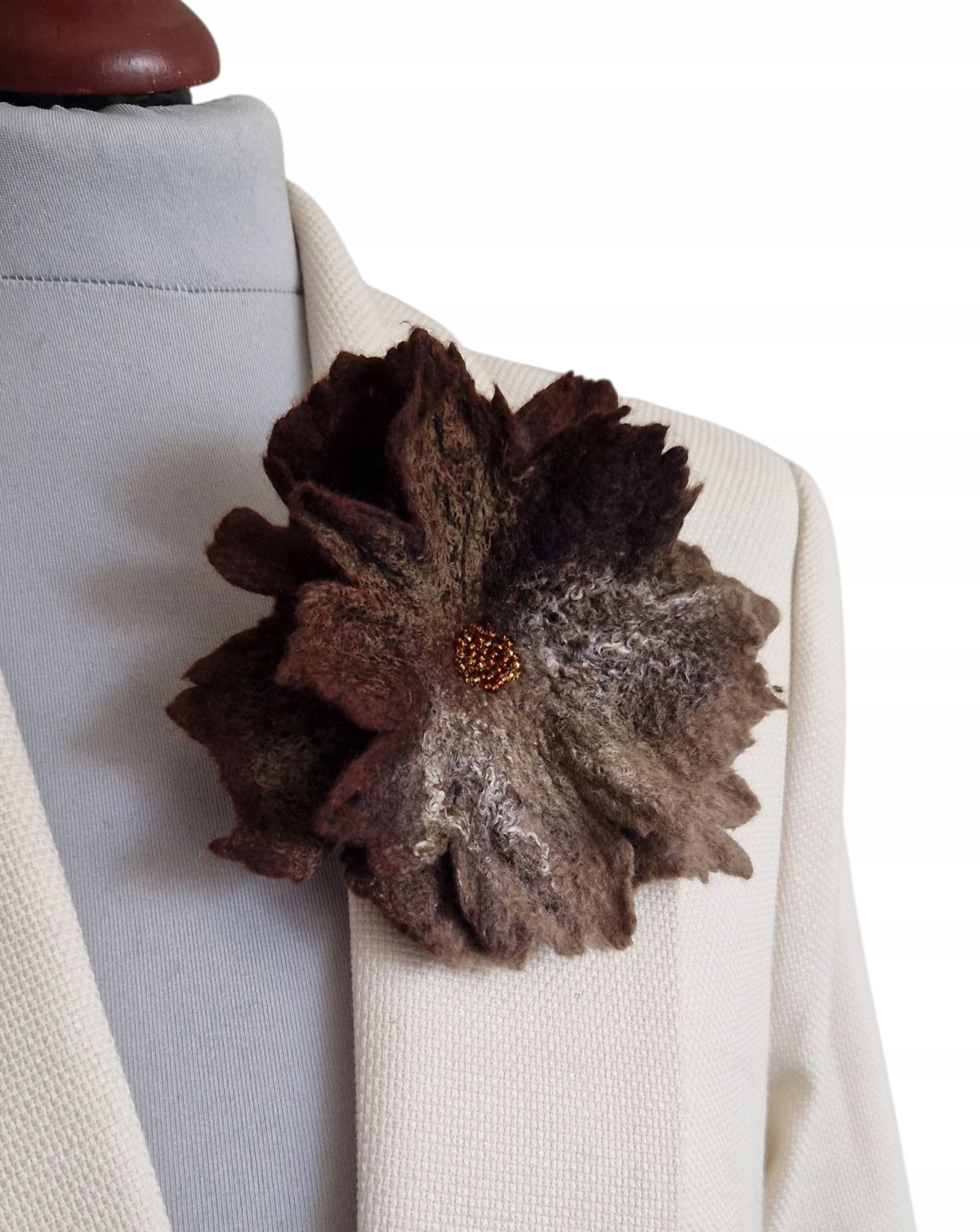 Изумительная брошь-цветок из мягкой шерсти австралийского мериноса и шелковых волокон.