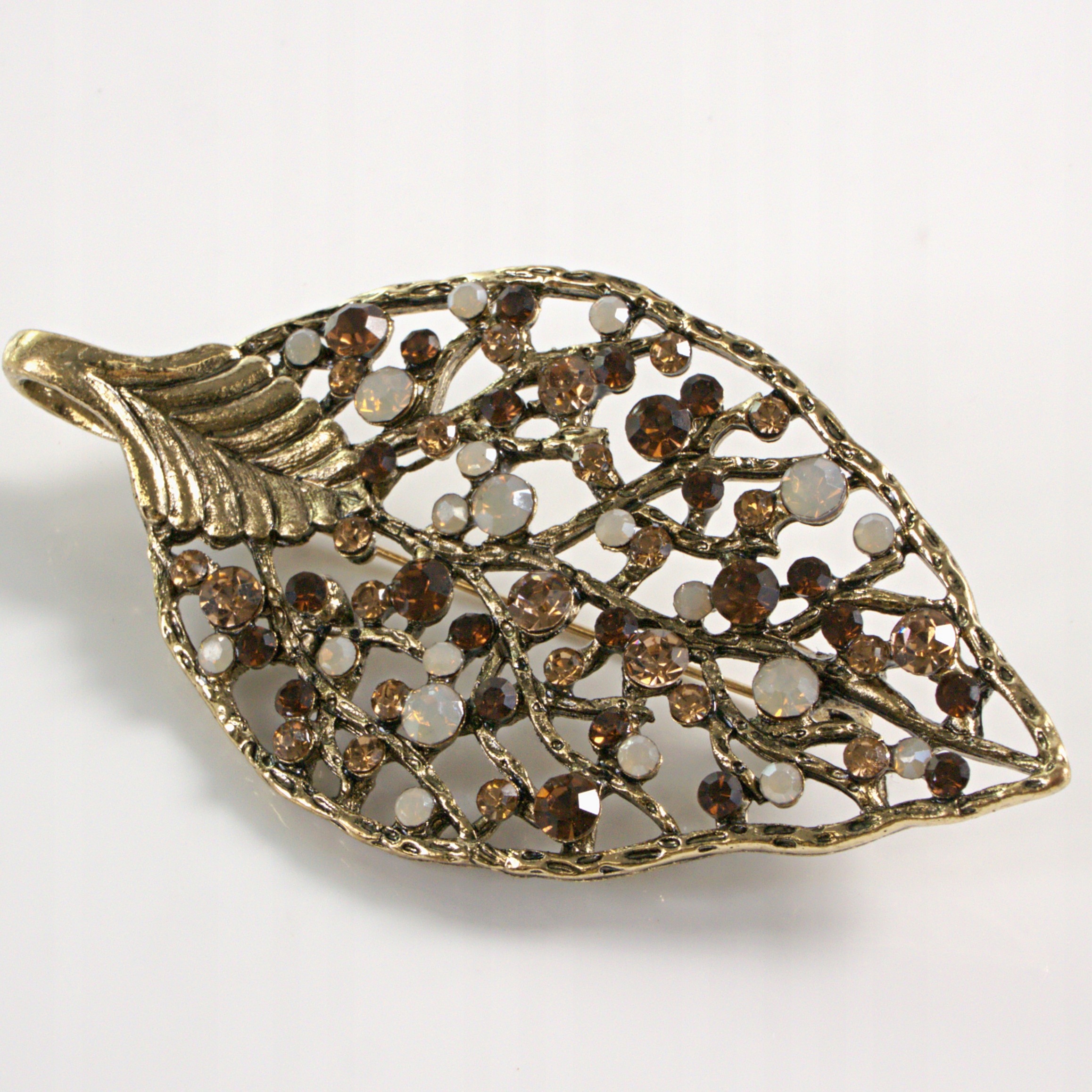 БРОШЬ ЛИСТ БРОШЬ СТАРОЕ ЗОЛОТО С ЦИРКОНИЯМИ ЛОЛИТА АКСЕССУАРЫ