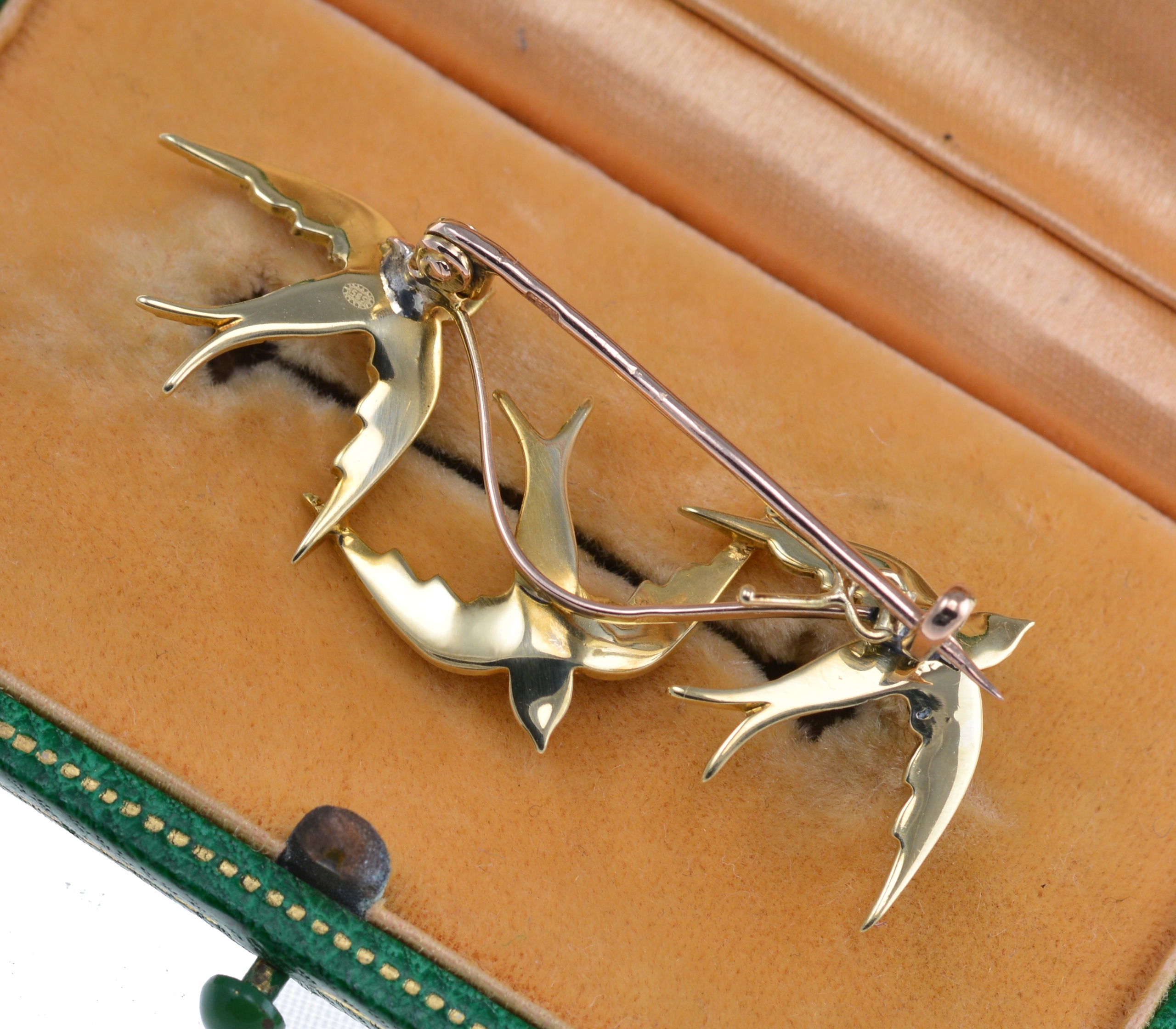 БРОШКА-ЛАСТІВКА З ВІКТОРІАНСЬКОГО ЗОЛОТА 14К