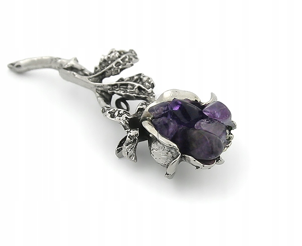 Красивая брошь-роза, украшенная камнями - аметистами.