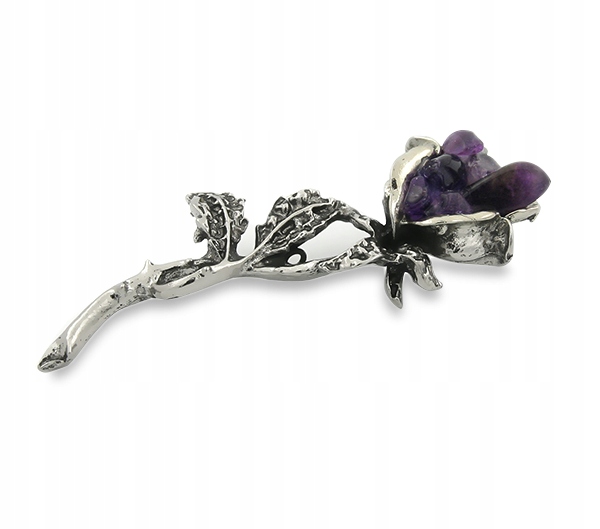 БРОШЬ РОЗА СЕРЕБРЯНАЯ С АМЕТИСТАМИ