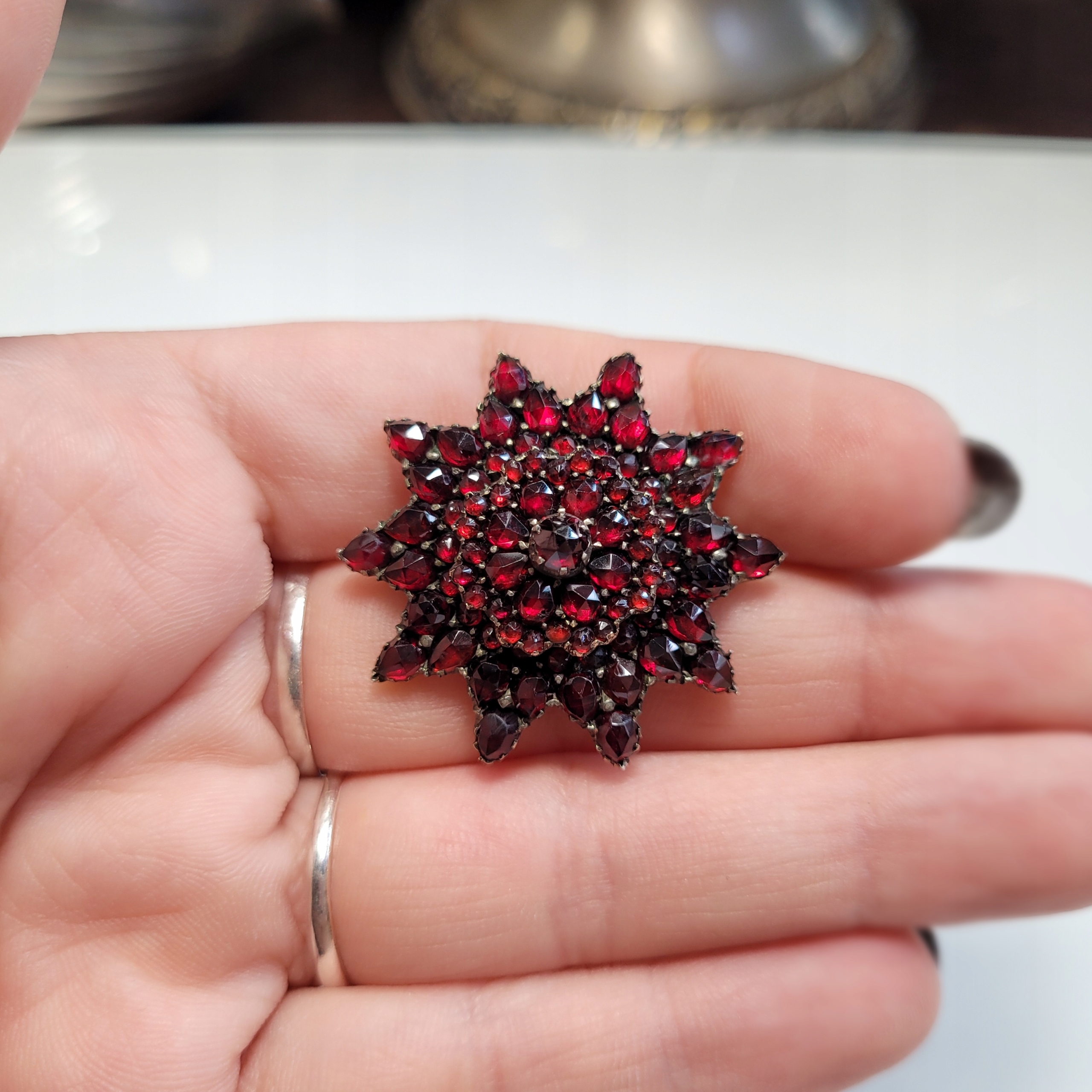 Брошь с гранатами - конец 19 века, гранаты-пиропы.