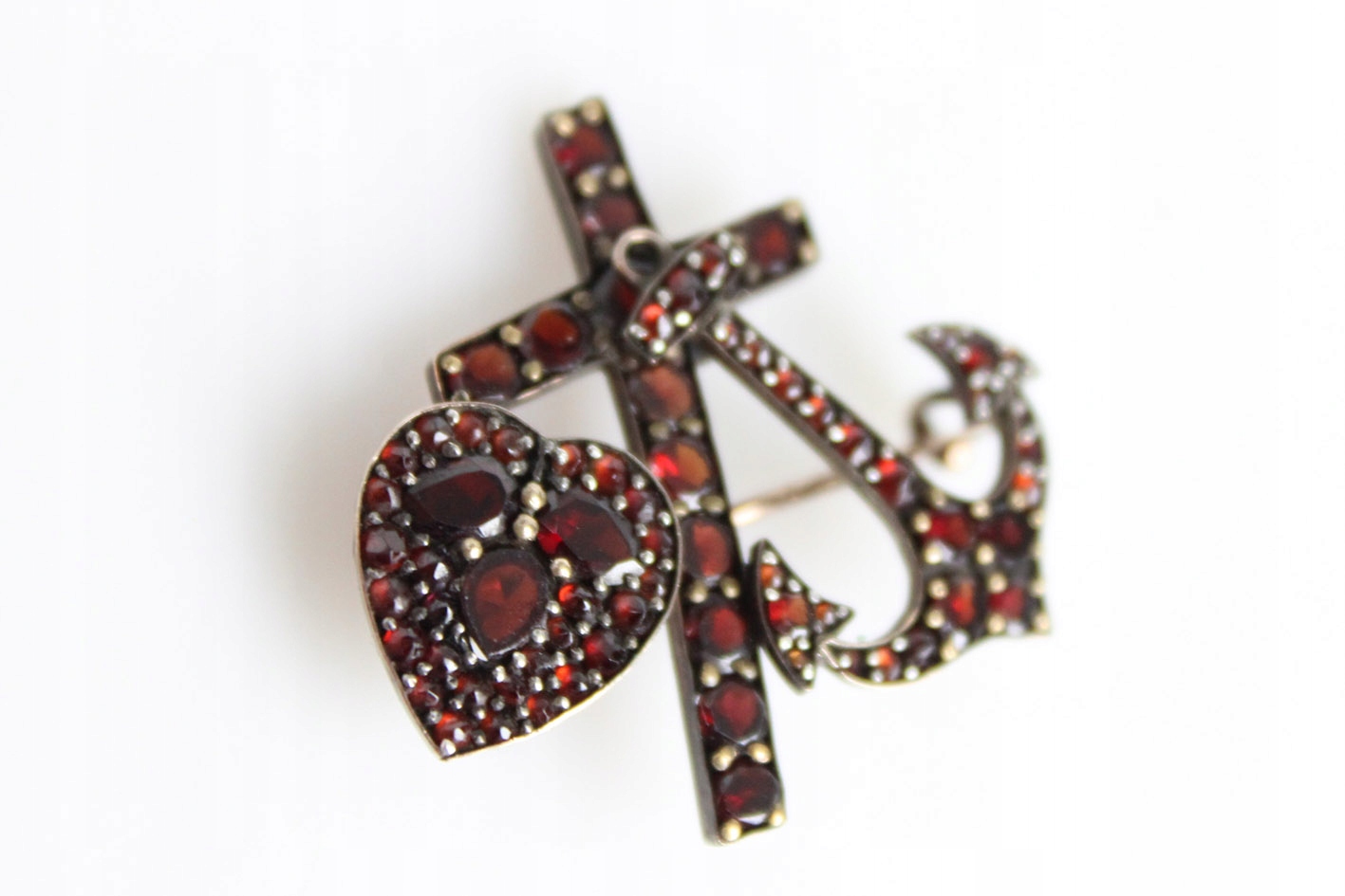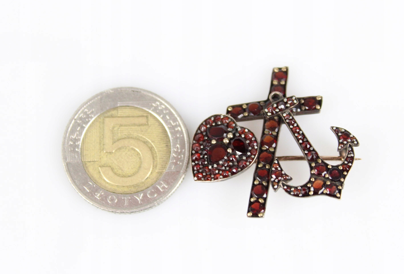 Оригинальная брошь, изготовленная во время Январского восстания или сразу после него. Основание из позолоченной латуни, богато украшенное натуральными гранатами. Состояние очень хорошее, камни в комплекте. Размеры: