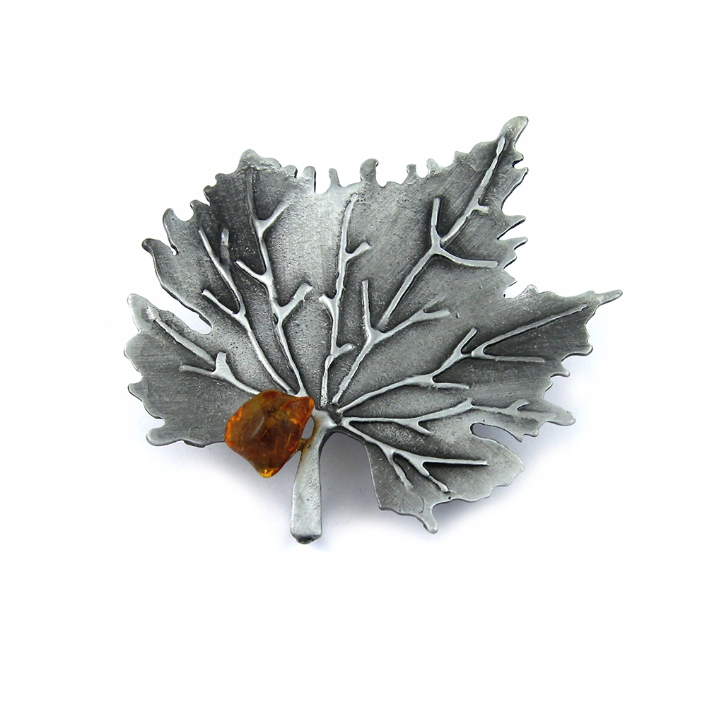 БРОШЬ/ОЖЕРЕЛЬЕ В СТИЛЕ ЛИСТ С ЯНТАРЕМ